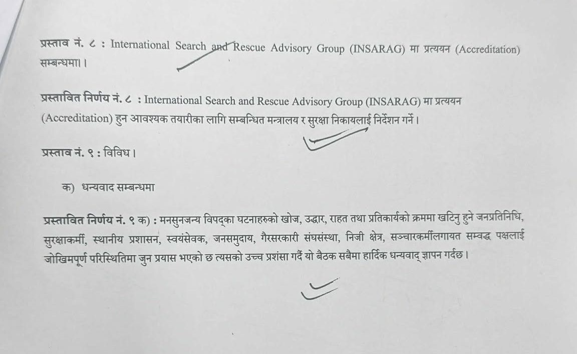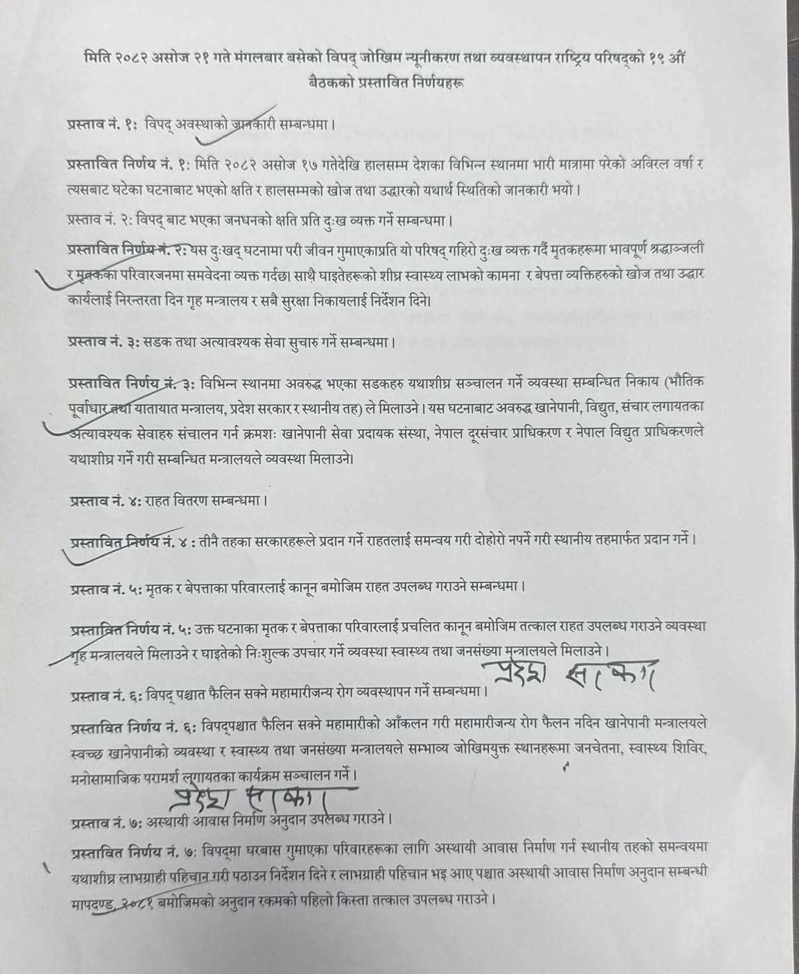 राष्ट्रिय विपद् जोखिम न्यूनीकरण तथा व्यवस्थापन राष्ट्रिय परिषद्को १९ औं बैठकले यस्तो निर्णय गरेको हो ।