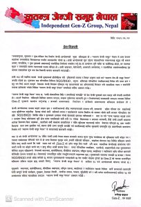 काठमाडौं । भदौ २३ को जेनजी आन्दोलनमा पानी बाँड्न गएको भन्ने र विदेशी एजेन्सीको शंकास्पद एजेन्टका रूपमा काम गर्ने व्यक्तिले अन्तरिम सरकार आन्दोलनका उपलब्धि कब्जा गर्न खोजेको भन्दै स्वतन्त्र जेनजी समूहले आपत्ति जनाएको छ ।